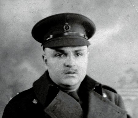 Morris Segal, brother of Sophie, in army uniform. Cap badge seems to be RAMC (needs further inspection). Date stamped on the back: 19 FEB 1941. 19 crossed out in pencil and 18 written in.